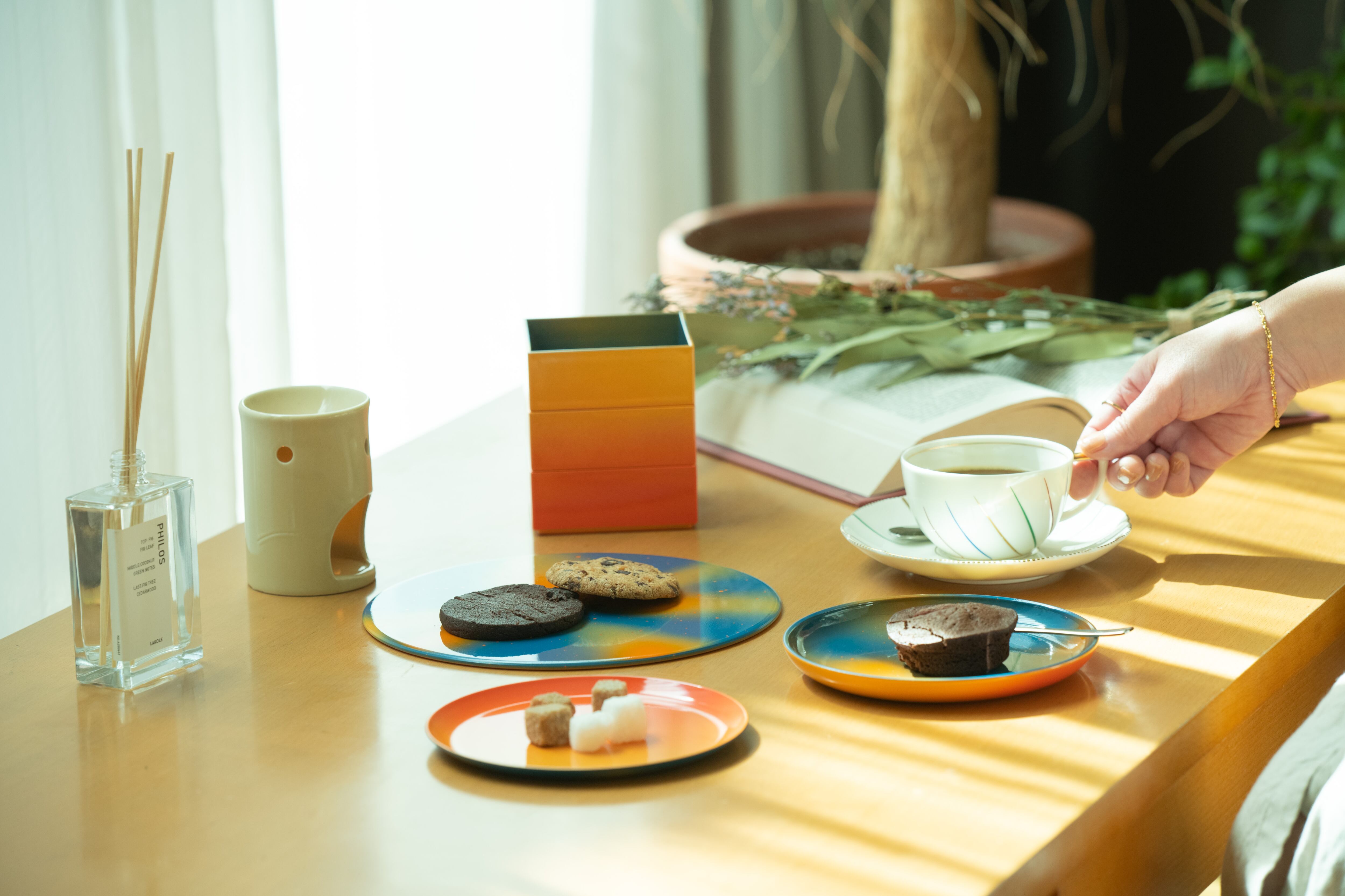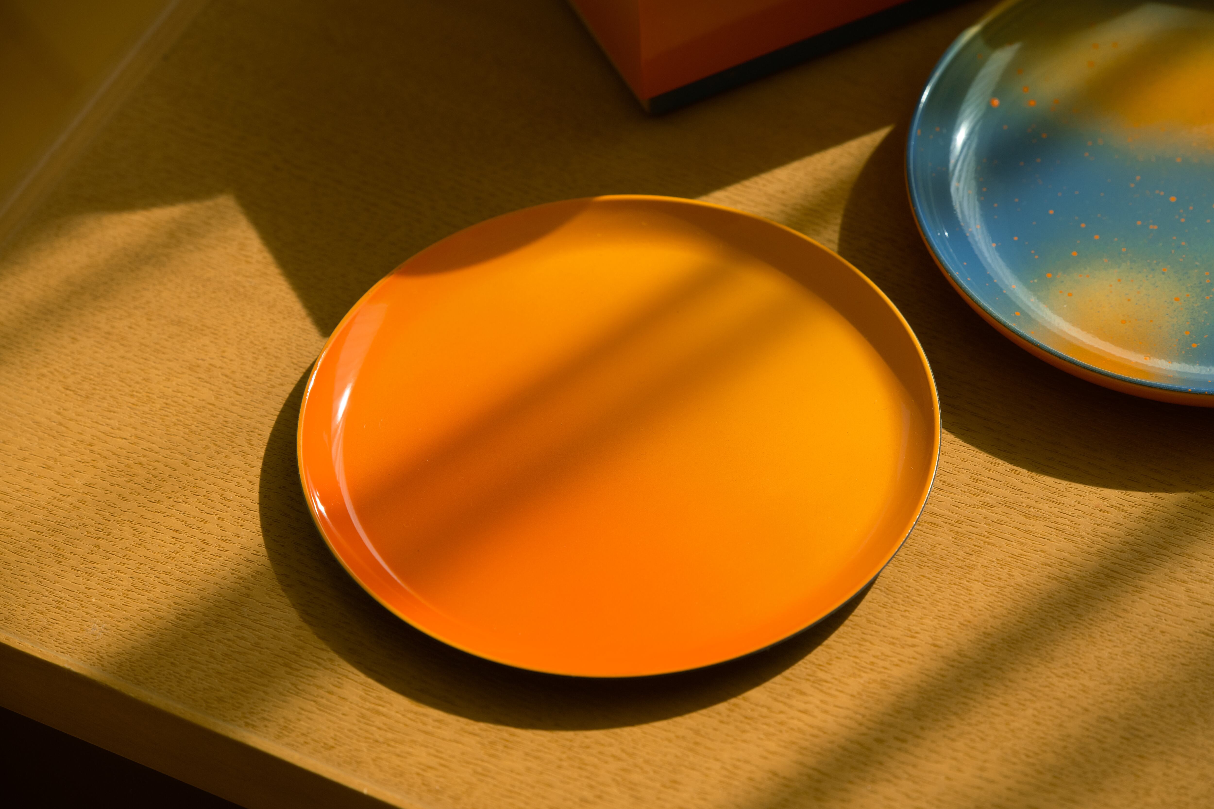 橙のグラデーションを表にした小物置きにも使えるお皿です。