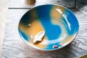 石川県加賀市海岸・加佐の岬から見た夕焼けが海岸線に混ざり合った幻想的な情景をモチーフにしたデザイン。丁度よい深みの鉢は、サラダボールやパスタ皿、料理のメインディッシュとしてお使いできます。電子レンジ対応(-20℃~140℃)、使った後は食洗器へクリアー塗装による抗菌効果のあるトップコートで仕上げた盛皿です。専用化粧箱入り。