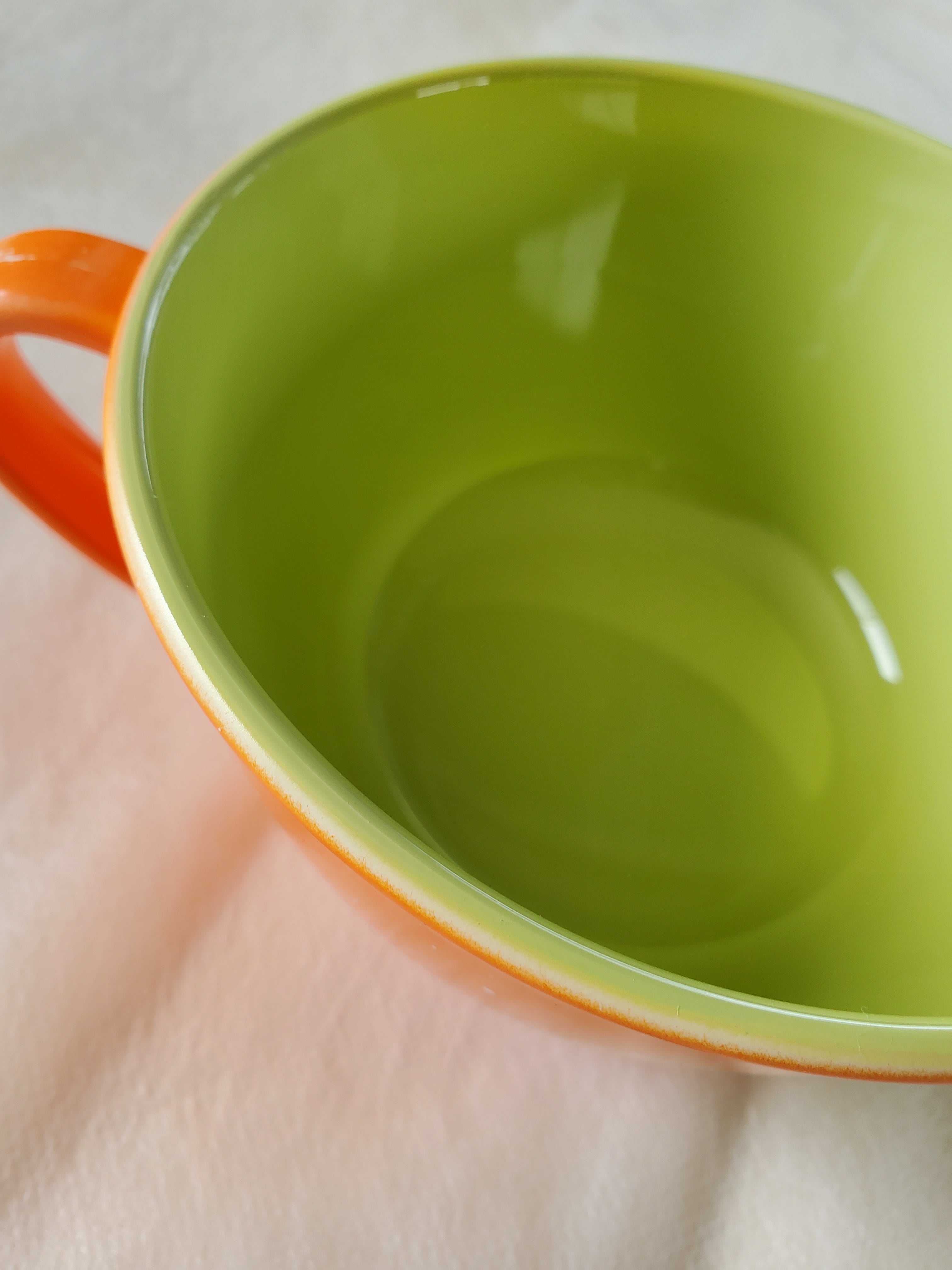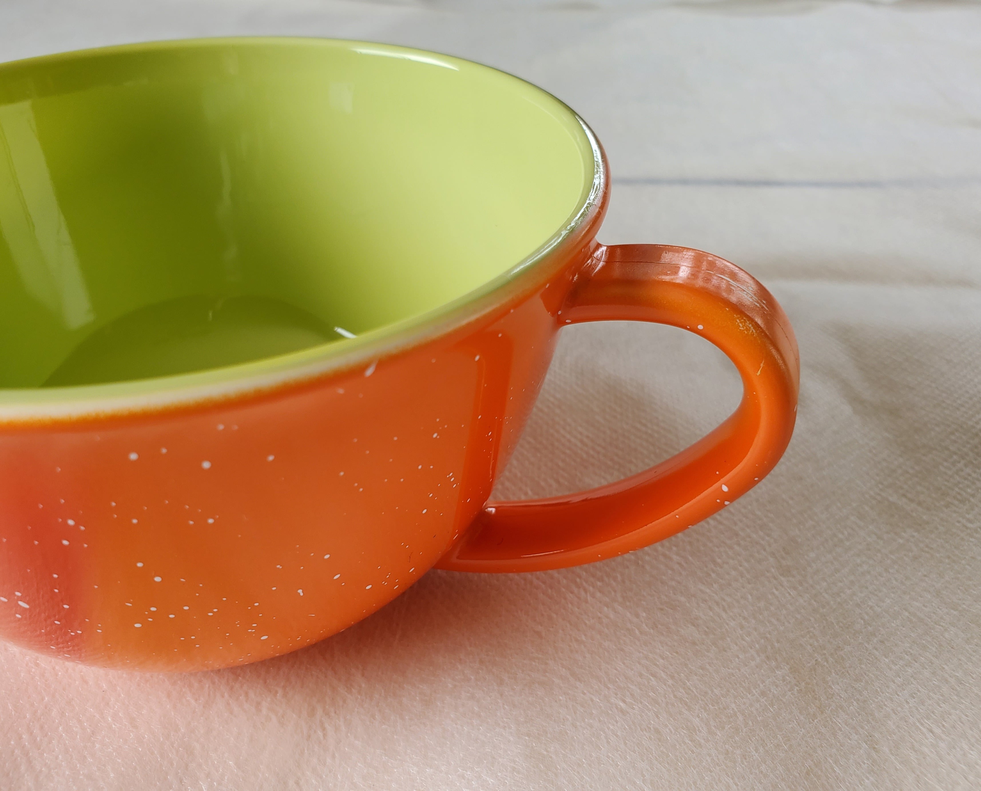 自然がモチーフのiroikoi 4.8手付スープカップ「鶴仙渓(かくせんけい)」。手付きのカップなので、熱いスープやお茶を飲む時も安心です。鮮やかな色合いと丸みのある形状が、食卓を一層華やかに演出します。