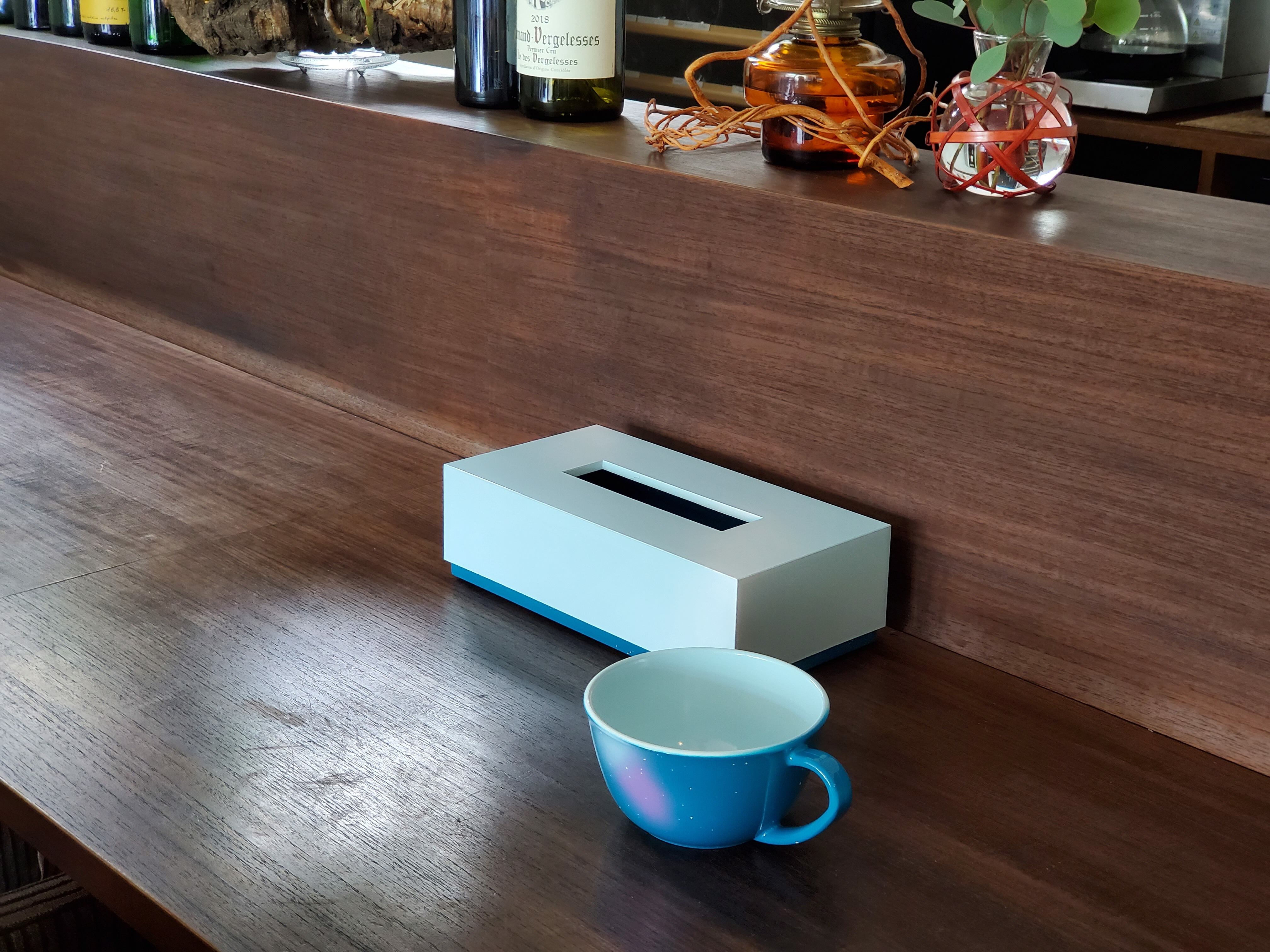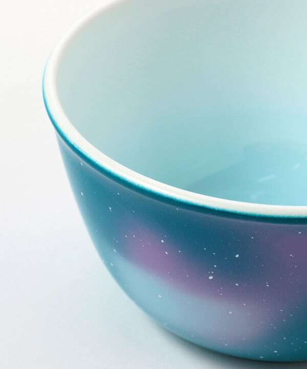 石川県加賀市山中温泉の渓流沿いの雪景色があるがモチーフとなったデザイン。内側は薄い青に白が混ざり、外側は青に緑、紫の色彩に雪を表現した白斑点の変わり塗で、侘び寂びを感じる手付きのカップ。吹き付け塗装で職人が一つ一つ手作業で塗重ねられ、食洗機や電子レンジにも対応。サイズ:146×125×65mm、素材:PET/ABS樹脂、塗装:ウレタン塗装抗菌クリアー、専用化粧箱入り。