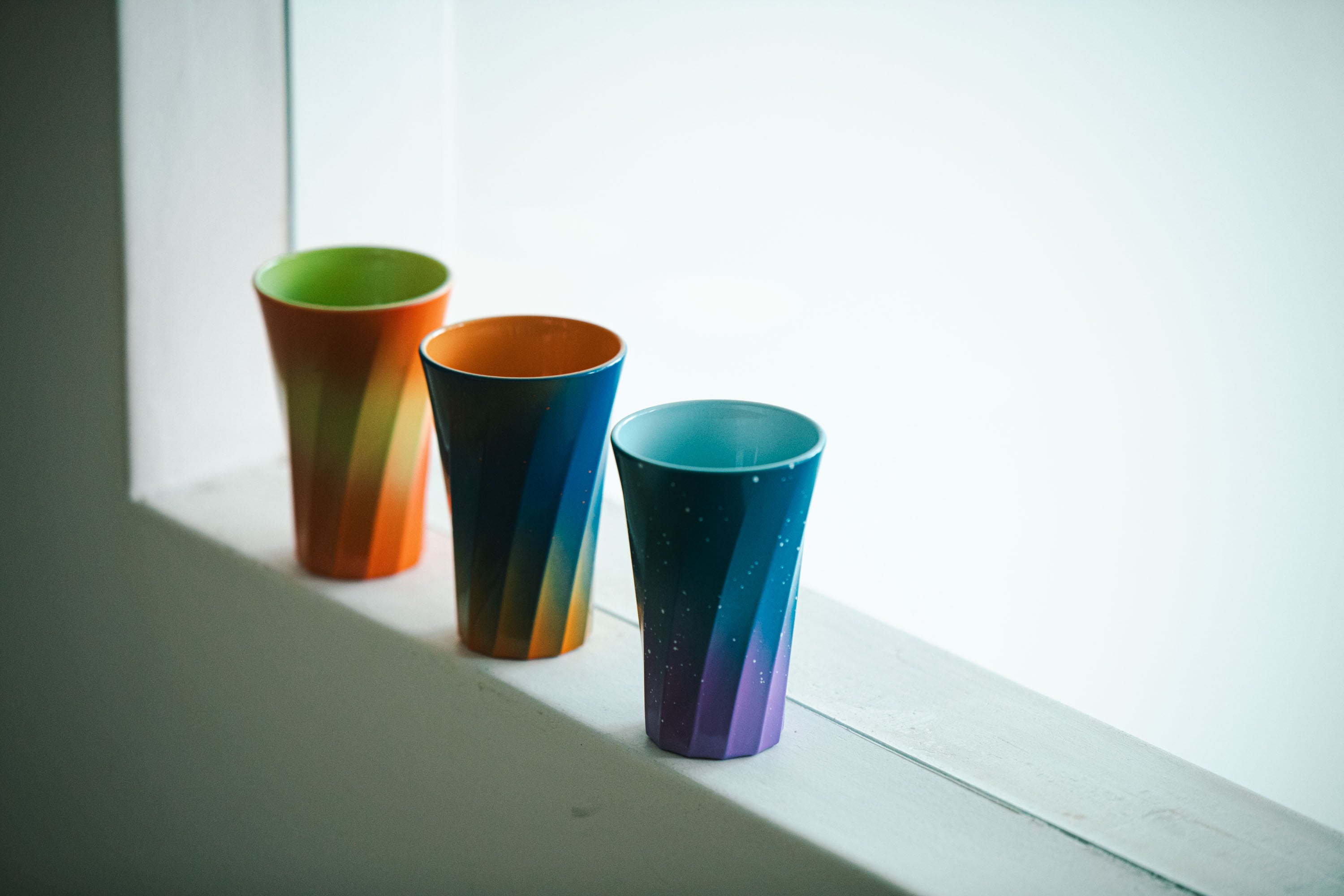 千波フリーカップ「晩夏」は、iroikoiから加佐の岬をモチーフした山中漆器です。吹き付け塗装職人が手掛ける伝統的な技法と現代のデザインが融合したカップで、晩夏の風景をイメージさせるような美しい模様が施され、使うたびに季節感を感じさせてくれます。手に心地よい質感と使いやすさも魅力のひとつ。こだわりのフリーカップで、お茶や焼酎なとの熱い飲料やジュースなど冷たいを淹れるコップとしとお使いできます。